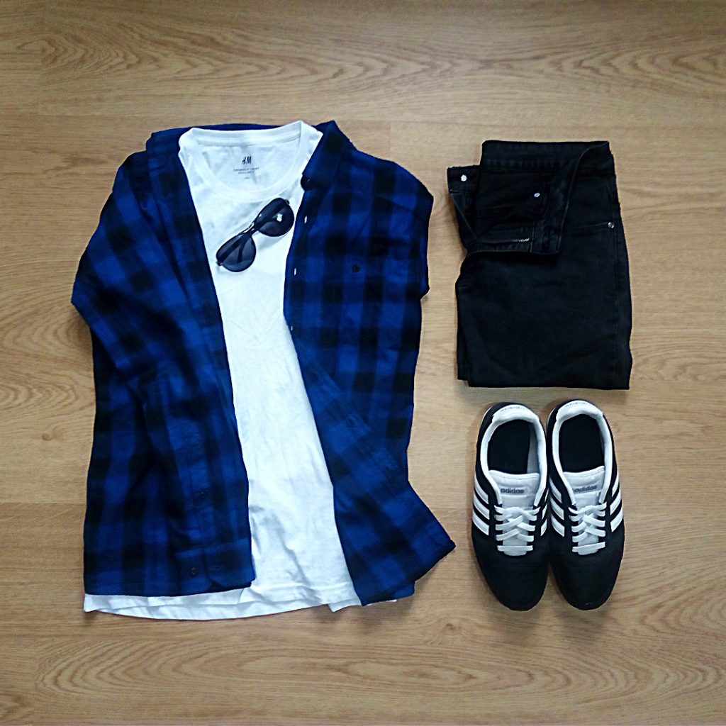 Blue, black & white spring inspiration outfit Frenzy Style March 27, 2017 Men Outfits Woven blue shirt Black sneakers Black slim jeans White T-shirts Sunglasses Frenzy Style