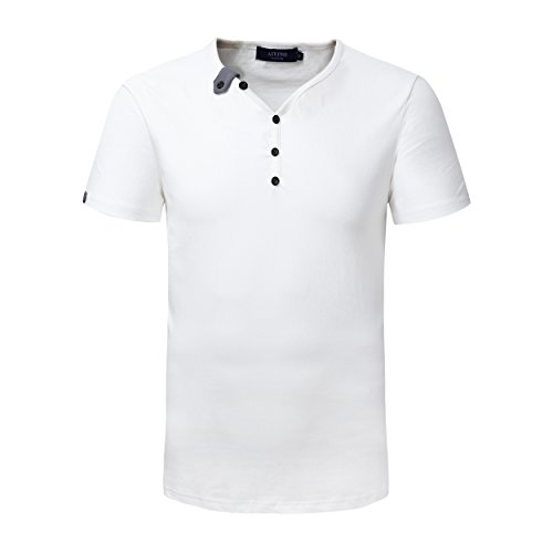 Aiyino Men’s Summer Casual V-Neck Button Cuffs Cardigan Short Sleeve T-Shirts S White