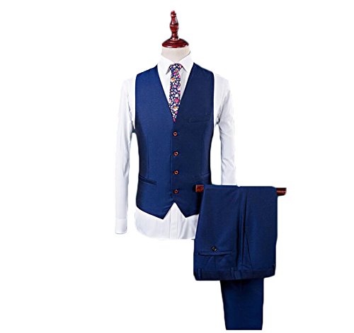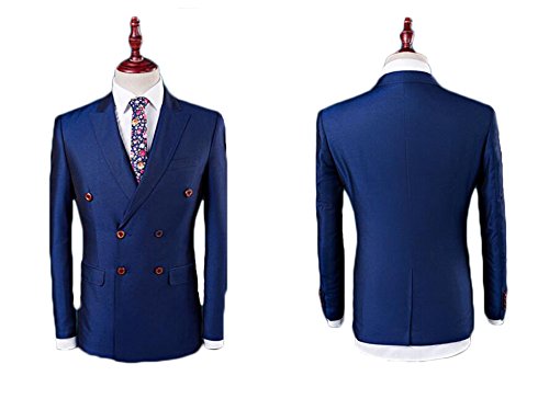 AK Beauty Men’s 3 Piece Double Breasted Wedding Formal Suit (Jacket+Pants+Vest) (S, Blue)