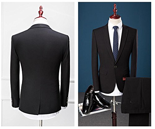 AK Beauty Men’s 3 Piece One Button Business Groom Wedding Suit (Jacket+Pants+Vest) (S, Black)