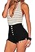 Baifern Women’s High Waist Stretch Denim Fringe Shorts