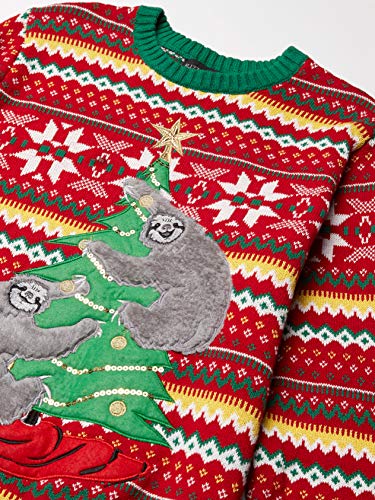 Blizzard Bay Men’s Decorating Sloths Ugly Christmas Sweater, Red/Green, Large