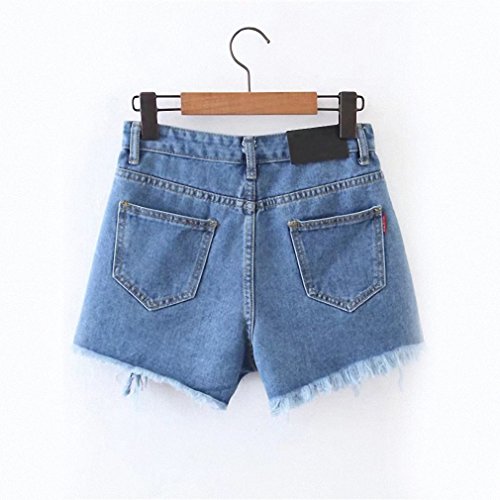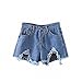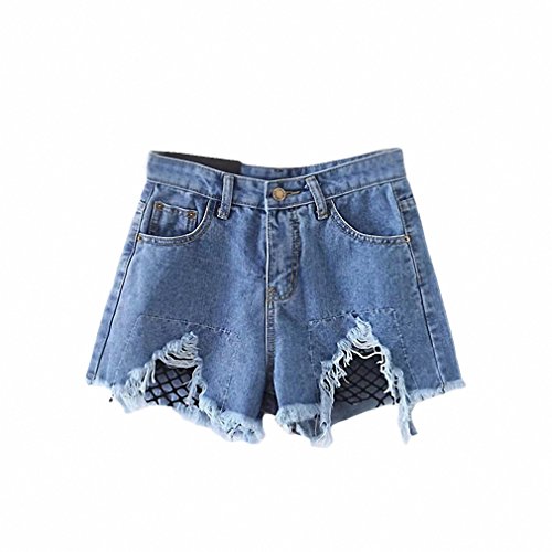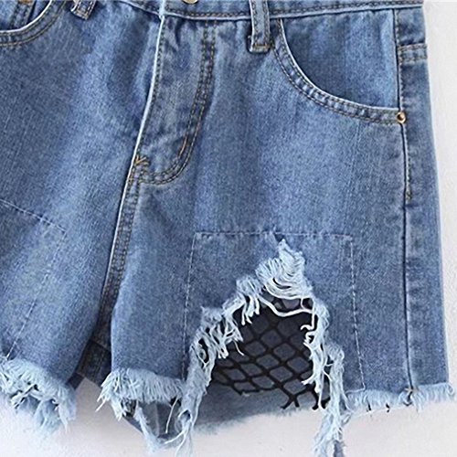 Blue Denim Shorts Women Contrast Mesh Raw Hem Sexy Ripped Summer Shorts NEW Fashion Mid Waist Button Casual Shorts