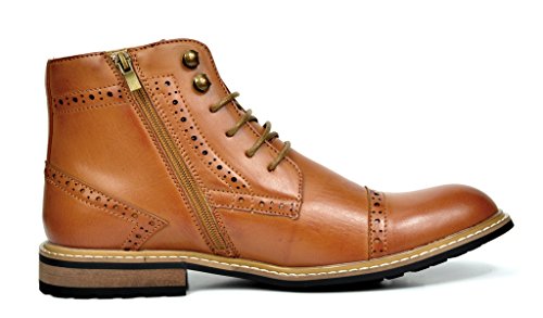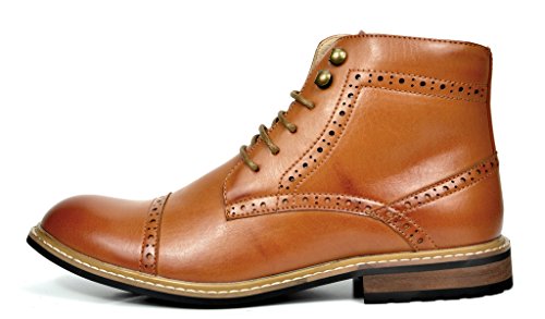 Bruno MARC BERGEN-03 Men’s Formal Classic Notched Lace Up Perforated Leather Lined Ankle High Oxford Dress Boots BROWN SIZE 11