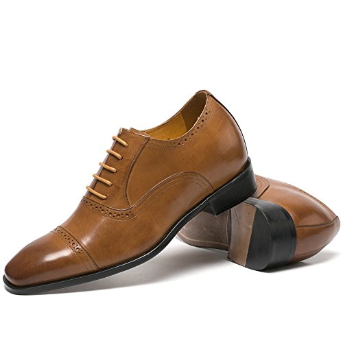 CHAMARIPA Elevator Shoes 2.76” Taller Men Brown Wingtip Dress Height Increasing Shoes Shoes K6506B US 7
