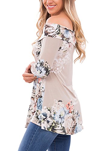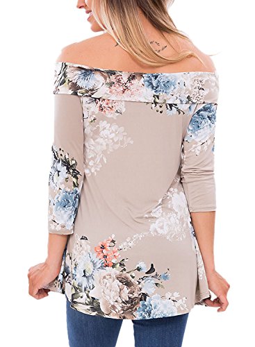 Chase Secret Womens Casual Off Shoulder 3 4 Sleeve Floral Print Blouses Tops Shirts Large Grey