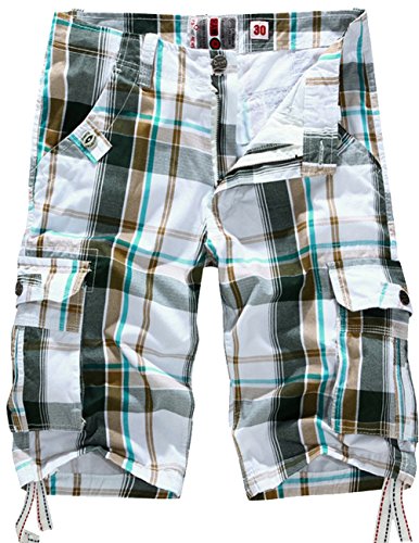chouyatou Men’s Summer Cool Multi-Pocket Straight Leg Utility Plaid Cargo Shorts (34, Khaki)