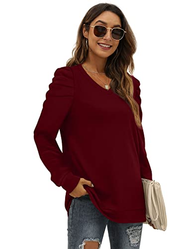 - Design - Basic sweatshirts, plain solid color tops, fashion v neck and puff sleeve design