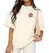 Cioatin Women’s Aesthetic Y2K Oversize Tee Shirt Top Floral Slogan Letter Graphic Drop Shoulder Short Sleeve Tshirt Apricot