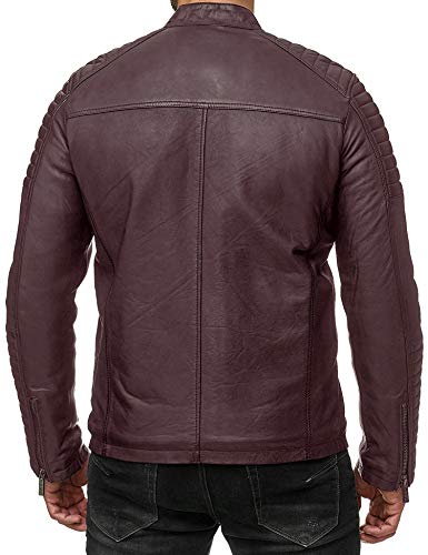 Coofandy Men’s Classic Leather Motorcycle Jacket Winter Biker Jacket Red