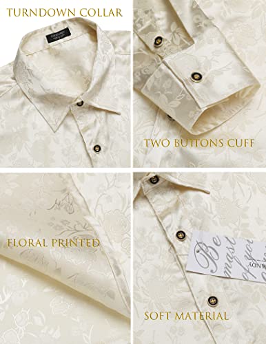 COOFANDY Men’s Floral Print Shirt Luxury Shiny Silk Like Satin Button Up Dress Shirts Beige