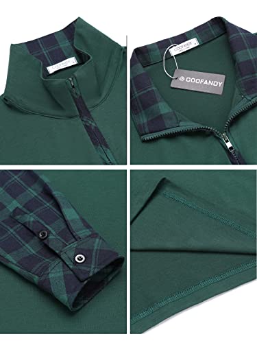 COOFANDY Men’s Long Sleeve Polo Shirts Casual Slim Fit Zipper Plaid Polo T Shirts (XL, Green)