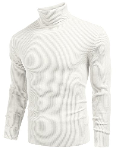 COOFANDY Mens Ribbed Slim Fit Knitted Pullover Turtleneck Sweater White