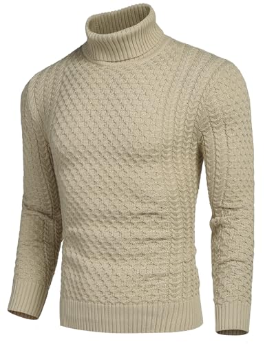 COOFANDY Men’s Slim Fit Turtleneck Sweater Casual Knitted Twisted Pullover Solid Sweaters Khaki