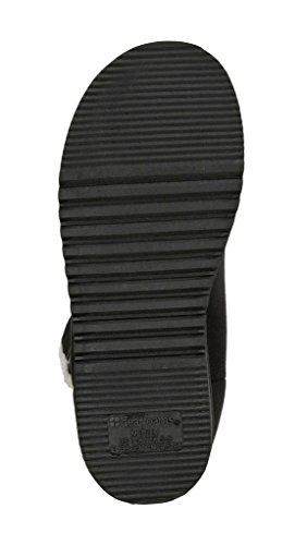 Dearfoams Women’s Indoor/Outdoor Mixed Material Slipper Booties with Faux Shearling Lining, Black, Large / 9-10 B(M) US