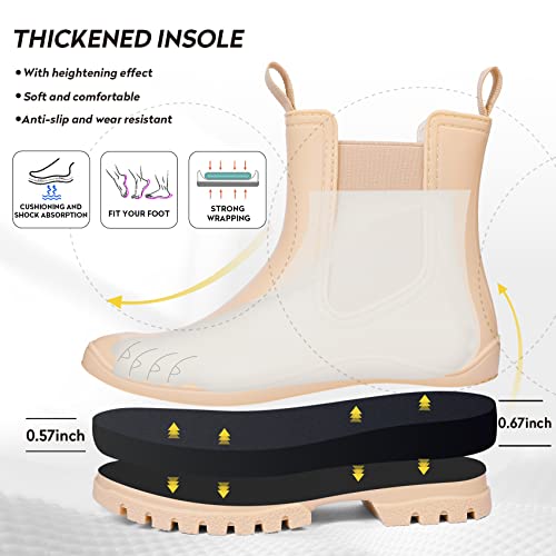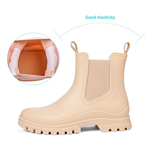 DKSUKO Women’s Short Rain Boots Rubber Waterproof Garden Boots Elastic Slip On Ankle Chelsea Boot Fashion Insulated Rain Shoe With Low Heel