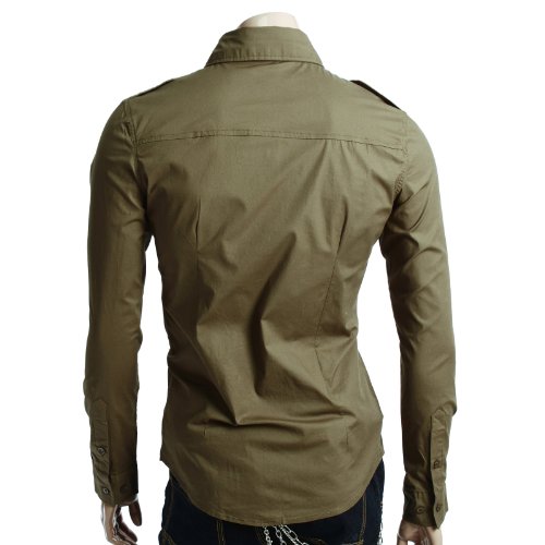 Doublju Mens Dress Shirt with Epaulet KHAKI (US-S)