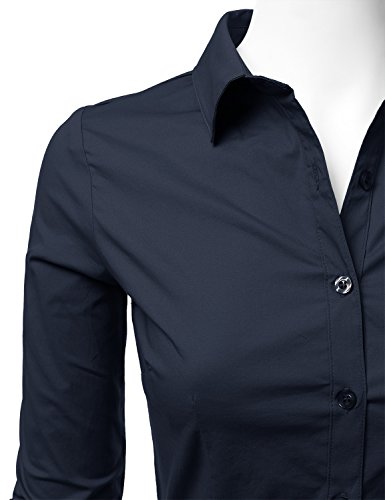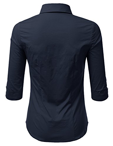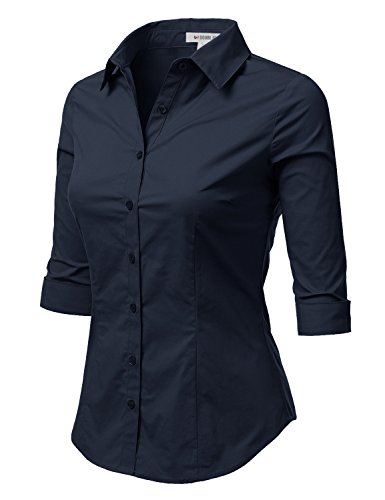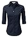 Doublju Womens 3/4 Sleeve Cotton Button Down Collared Shirt