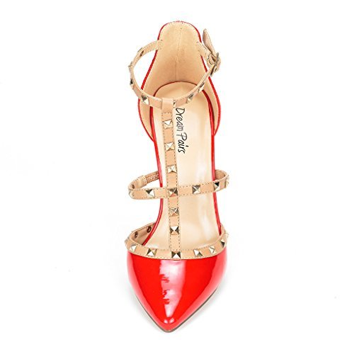 DREAM PAIRS ROCKSTAR-HIGH Women’s D’Orsay Style Metal Studs Pointy Pumps Classic Stiletto Heel Shoes New Red-Patent Size 10