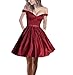 DreHouse Women’s Off The Shoulder Beaded Satin Evening Prom Dress With Pocket