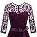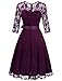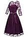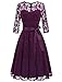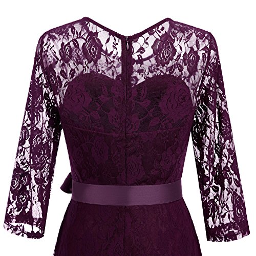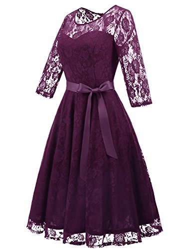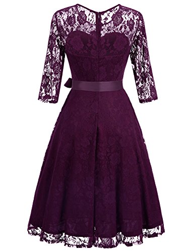 Dressystar 0017 Women’s Elegant Floral Lace Dress 3/4 Sleeves Bridesmaid Midi Dresses Illusion Neckline Grape XXL