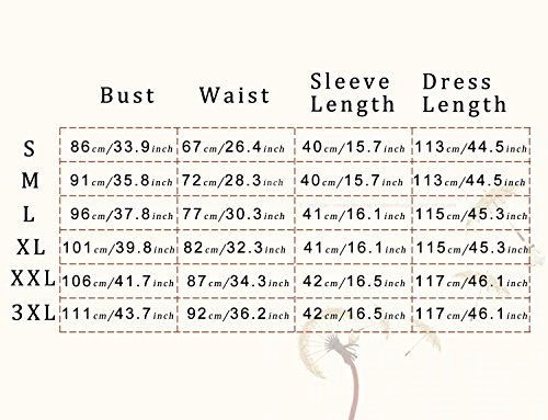 The perfect bridesmaid dress with romantic lace, Below-knee length. This formal gown is surprisingly affordable. It will be your best choice Bridesmaid, Prom, Formal Party and other occasions in both Autumn and Winter! Size S: Bust 86cm, Waist 67cm, Sleeves Length 40cm, Dress Length 113cm Size M: Bust 91cm, Waist 72cm, Sleeves Length 40cm, Dress Length 113cm Size L: Bust 96cm, Waist 77cm, Sleeves Length 41cm, Dress Length 115cm Size XL: Bust 101cm, Waist 82cm, Sleeves Length 41cm, Dress Length 115cm Size XXL: Bust 106cm, Waist 87cm, Sleeves Length 42cm, Dress Length 117cm Size 3XL: Bust 111cm, Waist 92cm, Sleeves Length 42cm, Dress Length 117cm