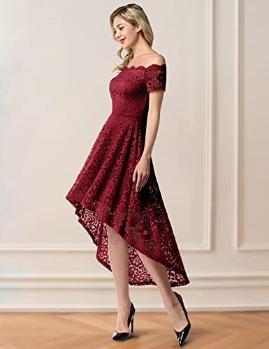 Dressystar Women’s Lace Cocktail Dress Hi-Lo Off Shoulder Bridesmaid Swing Formal Party Dress 0042 Burgundy XL