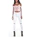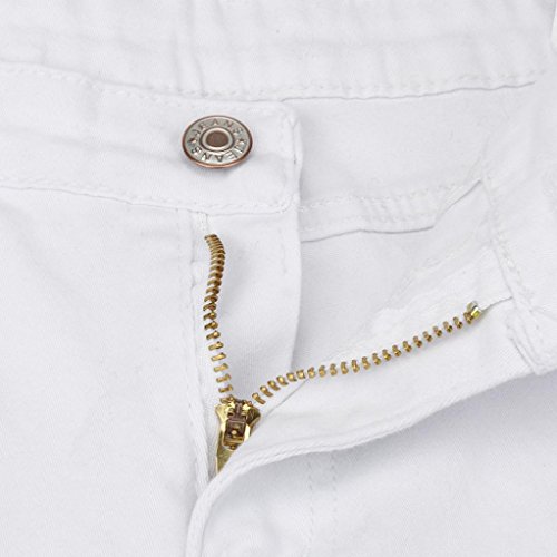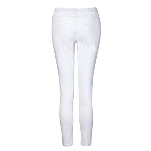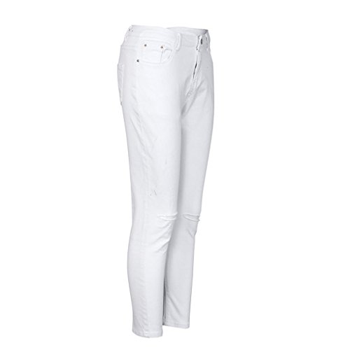 Ecurson Women High Waisted Elasticity Knee Hole Jeans Skinny Laies Pants (S, White)