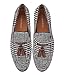 ELANROMAN Men Loafers Velvet Dress Tassels Shoes Fashion Houndstooth Party Wedding Shoes US 8 EUR 41 Feet Lenght 280mm Black/White