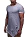 Enjoybuy Mens T Shirts Short Sleeve Hipster Hip Hop Basic Curved Hem Ripped Tops with Holes (Large, 02-Grey)