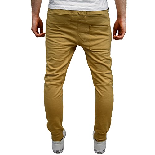 ENTT Mens Designer Branded Tapered Skinny Fit Jogging Bottoms (S, Sand)