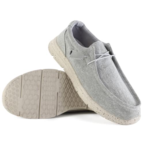 Fadilim Mens Slip-On Loafers Breathable Casual Canvas Non-Slip Wide Width Denim Adult Walking Stretch Flat Boat Shoes for Men Comfort Lightweight Fashion Outdoor Indoor Shoe Grey Size 10.5