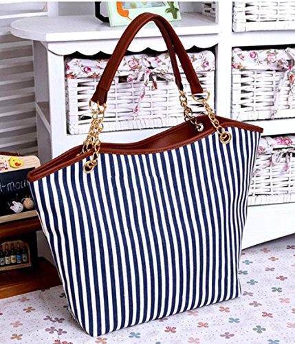 Fansela(TM) Girls Cute Stripe Canvas Shoulder Handbag Blue