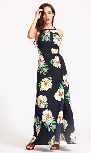 Floerns Women’s Sleeveless Halter Neck Vintage Floral Print Maxi Dress (Small, Navy-beige) …