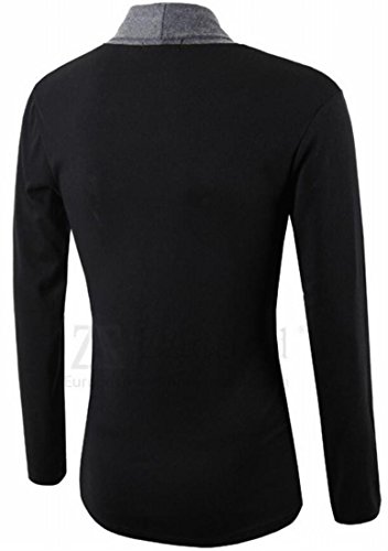 Generic Mens Casual Fit Knit Cardigan with Double Shawl Collar Dark Grey L