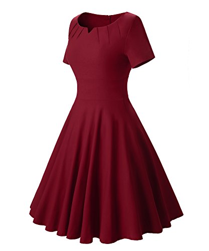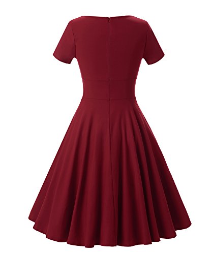 Gigileer Women’s 1950s Retro Vintage Short Sleeve Party Swing Dress (S(2-4), Burgundy)