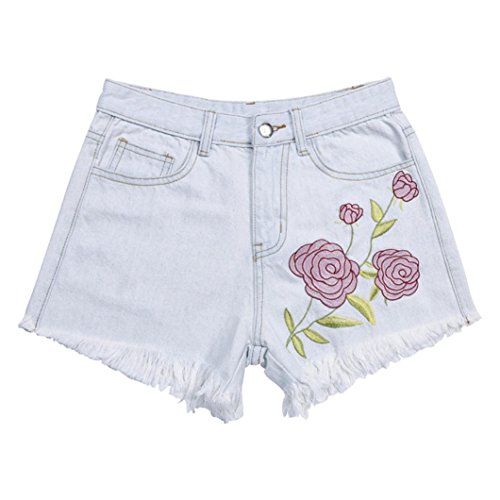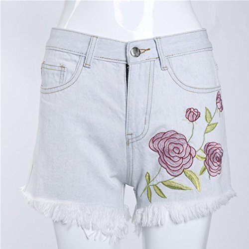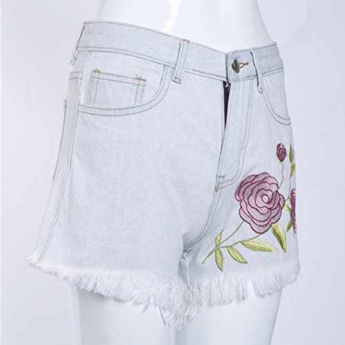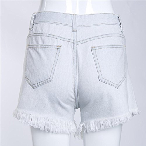 Gillberry Women Applique Hole Shorts Sexy Ripped Jeans Denim Shorts Worn Loose Shorts Pant (S, White)