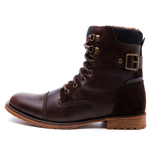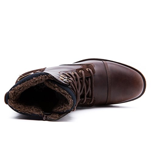 Men’s Fashion Lace Up Cap Toe Winter Ankle Combat Boots, Great Match With Any Outfits! Give your outfit a classy look with these chukka Featuring suede upper, fur lining for keeping your feet warm for all-day wear and the decorative sewing threads on the quarter for added appeal, cushioned footbed for comfort, and non-skid outsole.