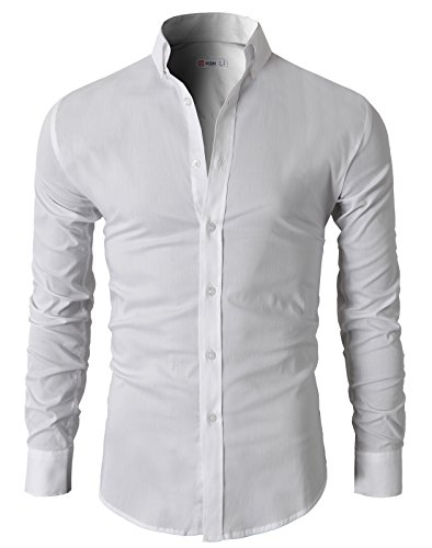 H2H Mens Casual Slim Fit Basic Designed Button Down Shirts WHITE US M/Asia L (KMTSTL0416)