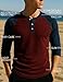 H2H Mens Casual Slim Fit Raglan 3/4 Sleeve Henley T-Shirts WINENAVY US XL/Asia 2XL (CMTTS0174)