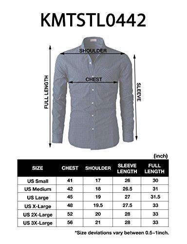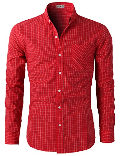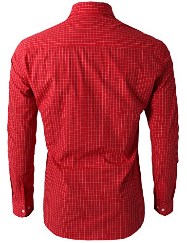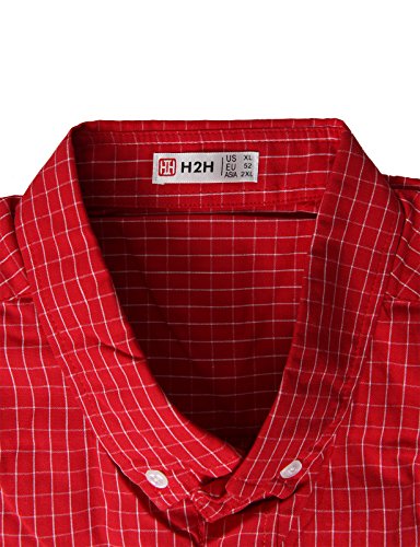 H2H Mens Unique Slim Fit Plaid Patterned Button Down Shirts,KMTSTL0442-RED,US Medium (Asia Large)