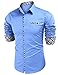Hotouch Mens Classic Checkered Contrast Dress Shirts Western Button Up Shirt (Sky Blue L)