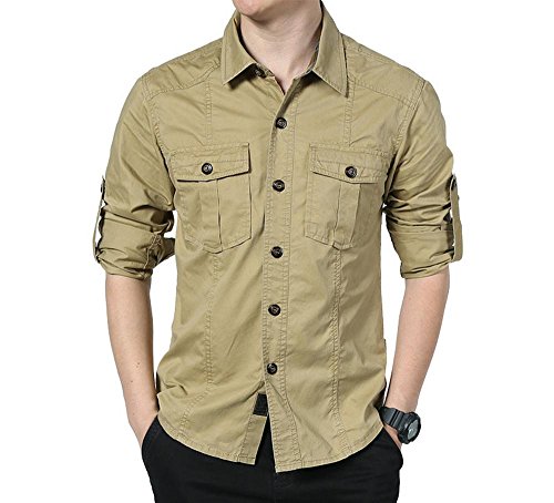 Hzcx Fashion Men’s Military Cotton Turn Down Collar Long Sleeve Pockets Shirts 20170303-1591-69-KH-US M(38) TAG L