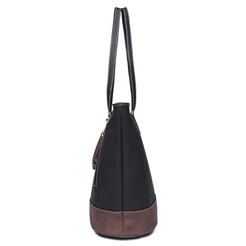 ilishop Women’s PU Leather Tote Handbag Contrast Color Shoulder Bag (Black)