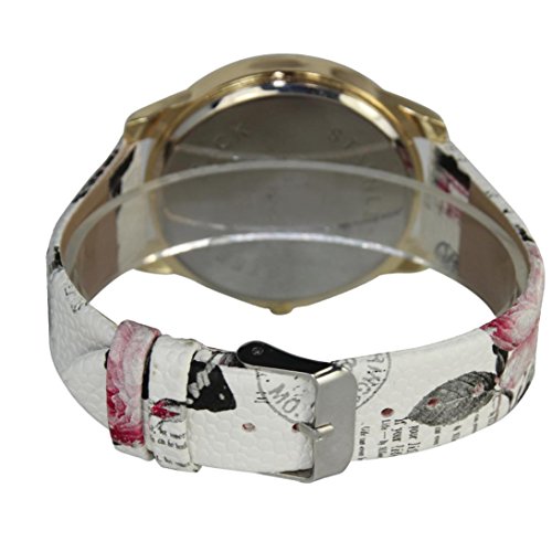 Inkach® Women Fashion High Heels Pattern Rhinestone Leather Band Analog Quartz Vogue Watches (White)