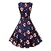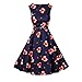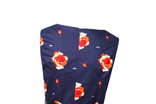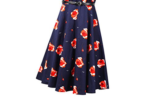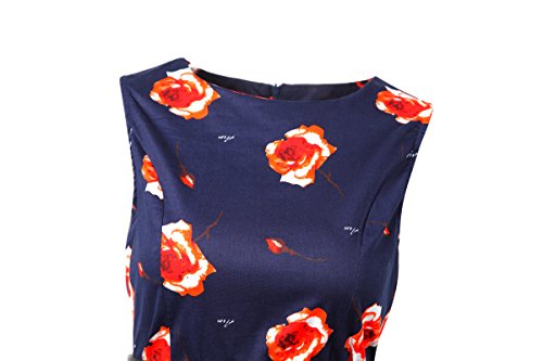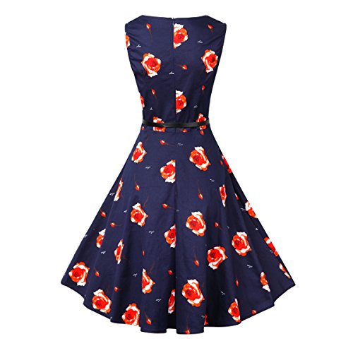 INYAN Women BoatNeck Sleeveless Royal Blue Floral Vintage Dress with Belt 1950s Tea Dress (S, Royal blue)