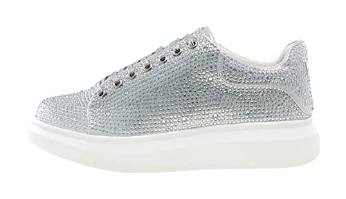 J75 Men’s Slick Jeweled Low Top Fashion Sneaker | Lightweight Comfortable & Durable|Silver Size 46 EU