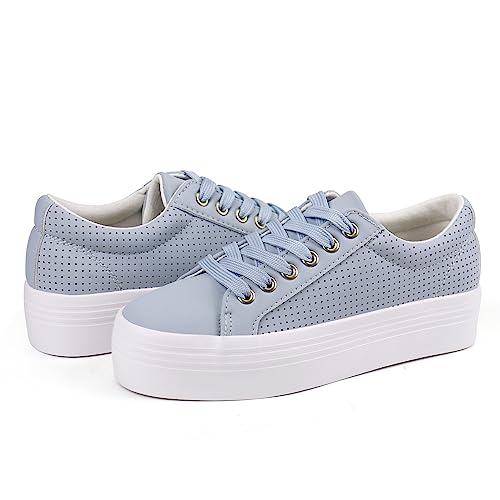 JABASIC Women Platform Sneakers Breathable Casual Lace Up Fashion Walking Shoes (5,Lt.Blue)