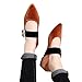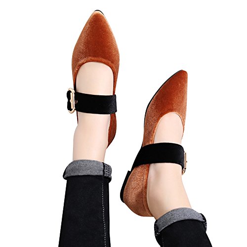 Jamron Women’s Retro Style Pointed Toe Velvet Mary Janes Contrast Color Buckle Strap Ballet Flats Pumps Shoes Brown SN02727 US8
