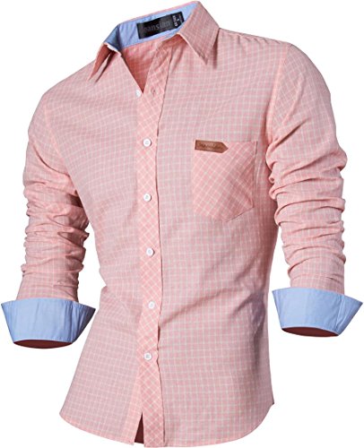 jeansian Men’s Long Sleeves Slim Dress Shirt 8615 LightPink S